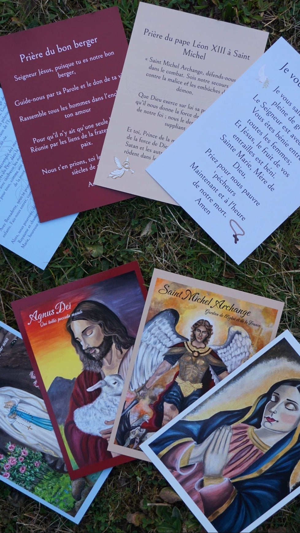 Découvrez la collection carte de prières religieuses qui sont des dérivés de mes tableaux religieux, reproduits en impression de qualité.