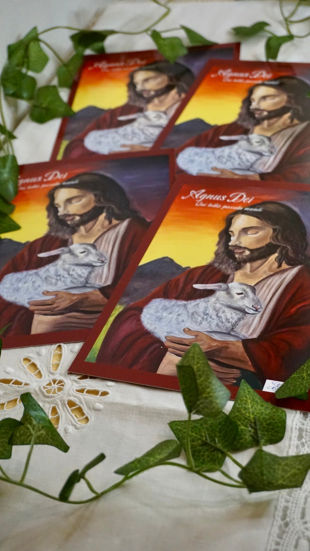 Dans cette représentation, Jésus porte tendrement un agneau contre son cœur: l’Agneau de Dieu qui donne sa vie par amour pour nous.