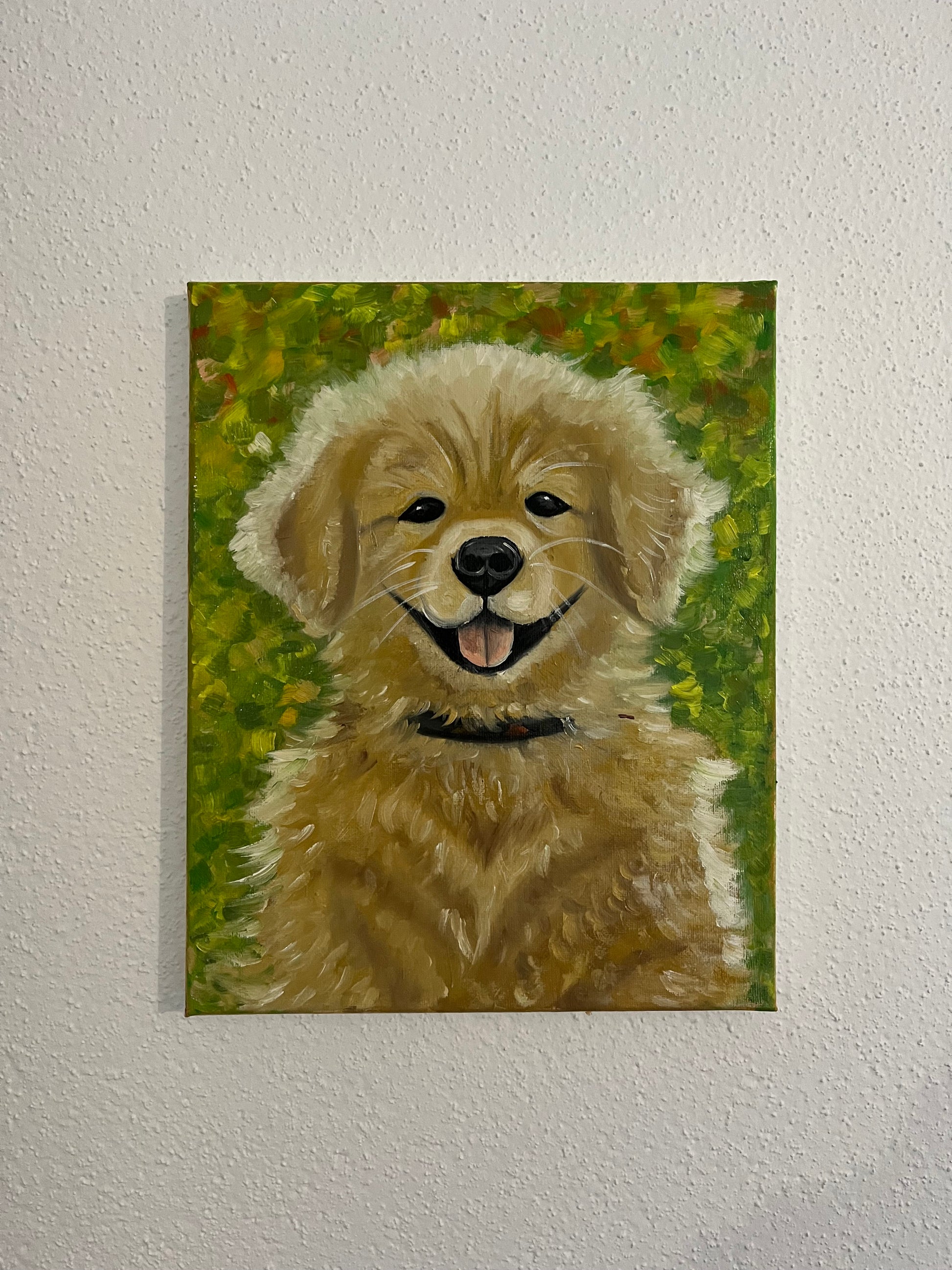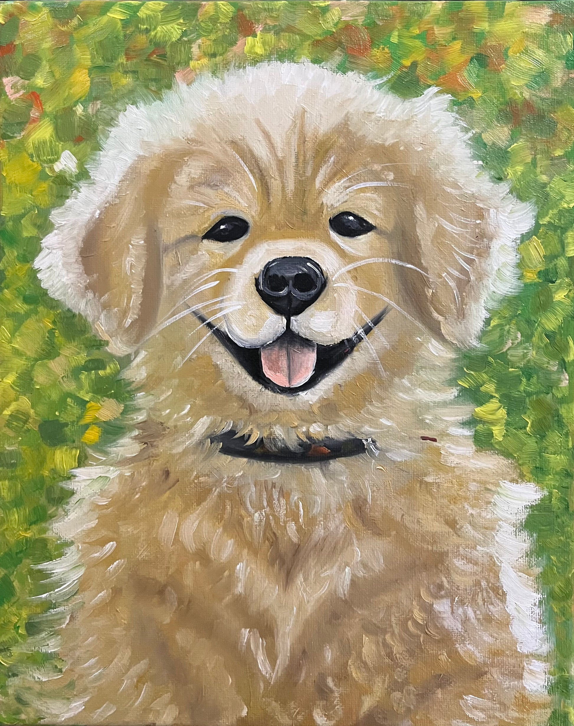 Un regard pétillant, un sourire franc : ce golden retriever incarne la joie simple et sincère de nos compagnons à quatre pattes.